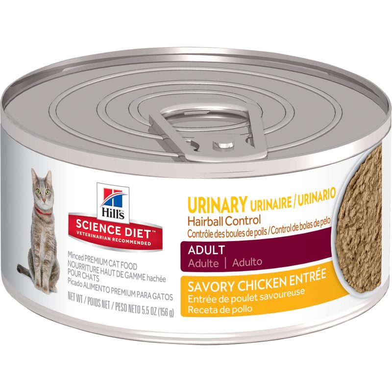 Hill's Science Diet Adult Urinary Hairball Control Savory Chicken Entre wet cat food is specificall...