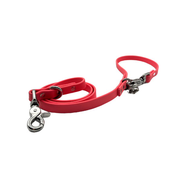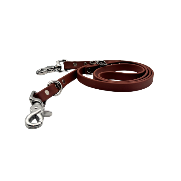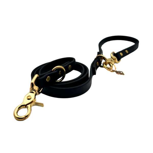 Made of biothane, which consists of a strong polyester webbing at its core, covered with a flexible and durable TPU or PVC coating, this material offers the appearance and feel of leather while providing the benefits of being completely waterproof, rot-proof, and easy to clean.
