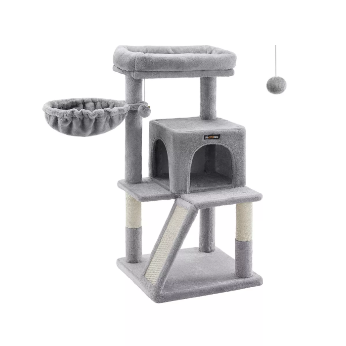 Inside the creative workshop of Feandrea, two sweet kittens jump around, personally examining our scratching trees and giving their animal feedback. Thus, the designers of Feandrea get to know firsthand whether the products meet the requirements of pampered whisker wearers. The highlights of this scratching tree at a glance: Space-saving; especially suitable for small apartments Climbing elements arranged in a staircase shape; ideal for small cats Well-padded viewing platform Cozy cave Stable basket lounger Covered with hard-wearing plush Package Contents: 1 x Cat Tree 1 x Instructions Feandrea Notes: If the cat cave is scratched and damaged by naughty paws, please repair or replace it before continued use to avoid the risk of injury to your fur friend.