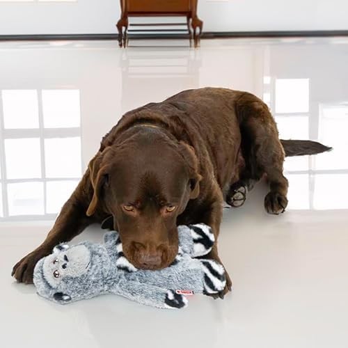 KONG Jungle Jamz plush characters bring a safari symphony to playtime! Each character is filled with a tough, double-layered, full-body squeaker for wild play sessions. Inner crinkle material and a rattle add percussion to the melody of sounds. Soft plush fur rewards appropriate chewing and snuggling when its time for these jungle pals to nap.