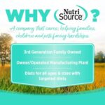 - NutriSource Choice grain inclusive formulas deliver compact nutrition and include balanced Omega 3 and Omega 6 fatty acids to support development and body systems.