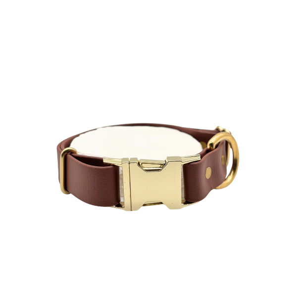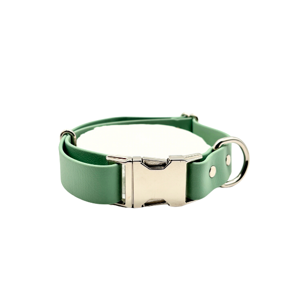Made of biothane, which consists of a strong polyester webbing at its core, covered with a flexible and durable TPU or PVC coating, this material offers the appearance and feel of leather while providing the benefits of being completely waterproof, rot-proof, and easy to clean.Â